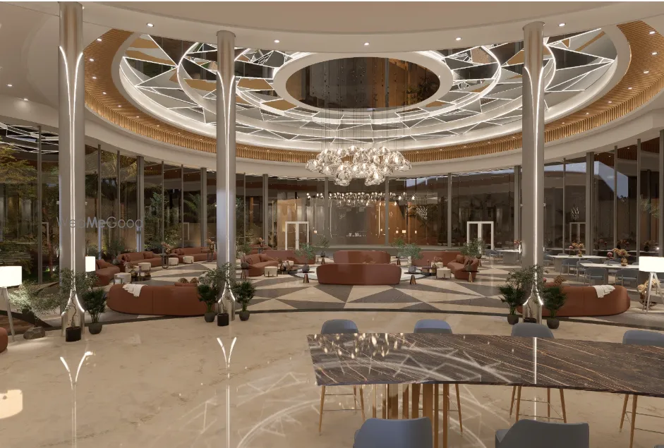 The indoor banquet hall reflects understated grandeur, where clean architectural lines, balanced proportions, and ambient lighting come together to create a canvas of elegance. With its expansive volume and carefully calibrated acoustics, the hall is engineered to host large gatherings while still preserving a sense of intimacy, allowing every ceremony, vow, and celebration to feel personal and immersive.