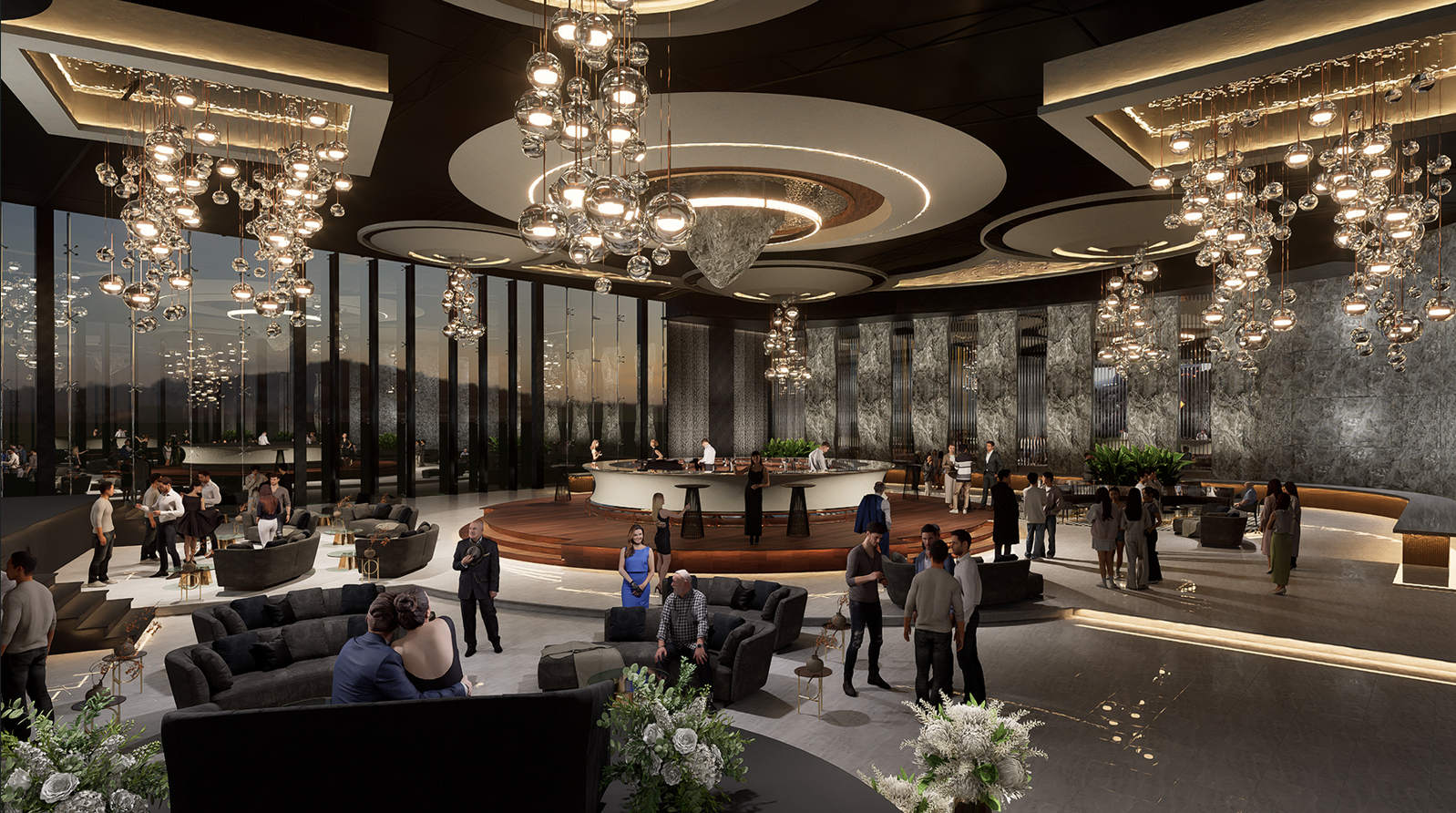 A wedding ambiance is created with affluent gold accents, theatrical lighting, and creative facilities, which change into a dreamlike world.